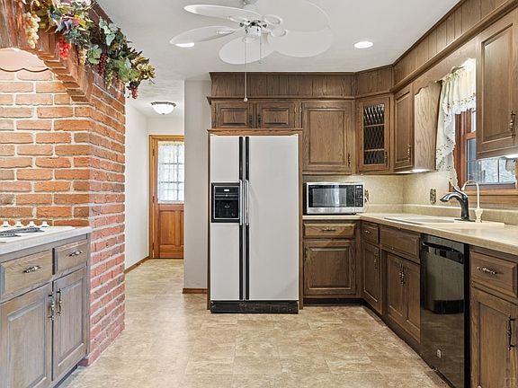 BEAUTIFUL LOCATION and SETTING on a 10+ acre fishing lake with a very desirable open floor plan is what you'll get with this HVAC efficient home. The lot is conducive for a separate outbuilding if desired. The home features wonderful double sided gas log fireplace between the kitchen and family room, spacious master bedroom with his/her closet accommodations, main bath with dual sinks and separate closet storage while the floor plan has an additional similar sized bedroom. There's a nook area for an office. There's a very large living room that accentuates amazing views of the lake with natural woodwork. The kitchen has a built-in oven with separate range all surrounded by brick, all appliances remain. The kitchen and dining area are open to the living and family room spaces. The four seasons room is ideal for morning breakfast or evening happy hour: did we mention the views. Lots of newer windows provide natural light and views. There's also a brick patio for barbequing or a potential hot tub that complete the entertainment aspects of the home. The crawl space was recently re-insulated and the high efficiency central air heating, cooling, and water softener systems help reduce overall costs going forward. A pull-down ladder offers additional above garage storage. The convenience of this location provides access to north Fort Wayne's major employers, highways, shopping, eateries, churches and more. The local school district is one of the top rated and is just minutes away. For the outdoors personality you'll love Cedar Creek public access just down the road and Leo area of Allen County.