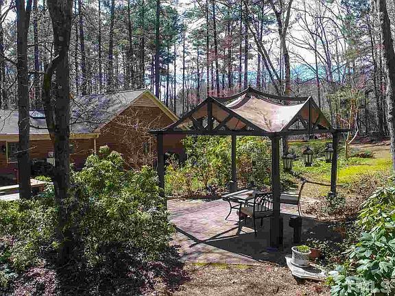 PRICE CORRECTION! Artists, Potters & Log cabin "She" Shed Lovers! 407 sf. workshop w/ sleeping loft; all-brick updated trad .w/ 2-car garage, secluded & landscaped 3+ac lot; Master - bidit & shower; New stainless oven, microwave & stove, solid surface counters, new paint throughout; new carpet; hardwd flrs; office on 1st flr. opens to screened porch & spacious deck., Custom built, lush,secluded and magical blooming landscaped retreat w/upper 300 sf. patio, gazebo +, 10 min. to UNC & 20 min to Mebane.