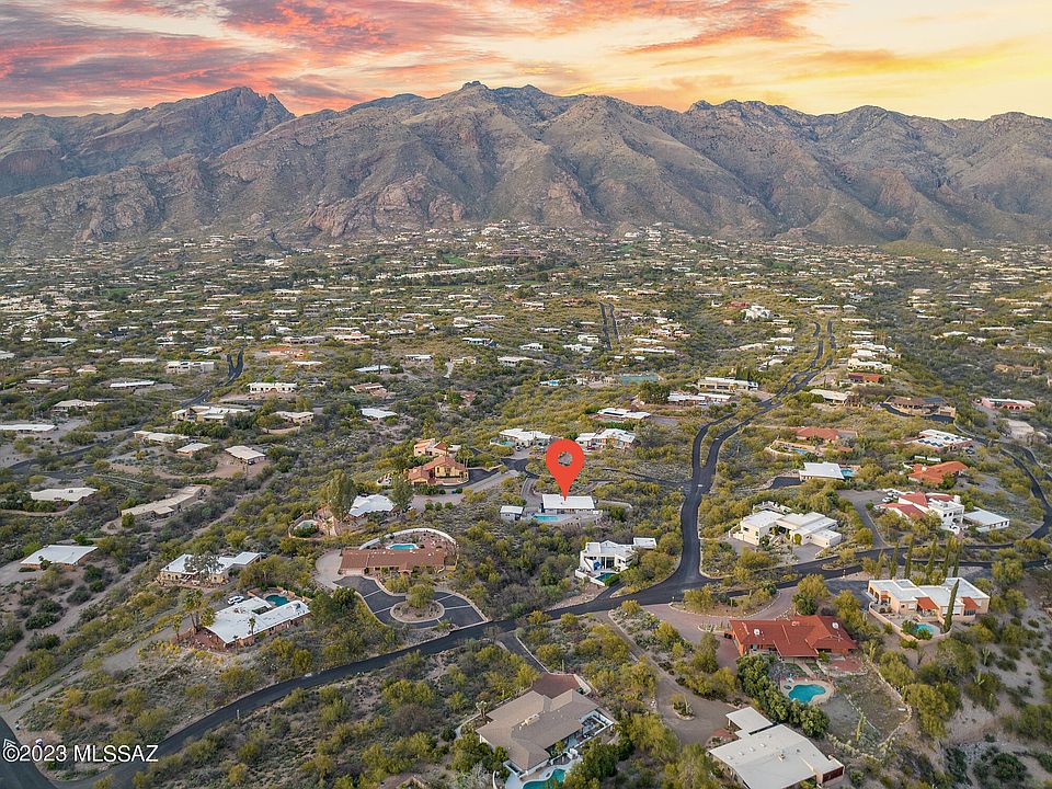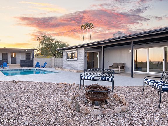 Nestled on a quiet cul-de-sac in Skyline Bel Air Estates, this 4-bedroom, 2-bathroom property has been carefully updated with no expense or detail spared. Some of the BRAND NEW features include energy efficient windows, tile flooring, interior and exterior paint, pool equipment, HVAC, and more! From the moment you step inside, you'll be impressed by the open concept kitchen and living area, which is perfect for entertaining and features brand new stainless steel appliances, granite countertops, and ample pantry space. The primary bedroom boasts two walk-in closets, and the split bedroom floorplan provides added privacy and tranquility. Rolling security shutters on every window and sliding door add an extra layer of security and peace of mind, and would be perfect for winter visitors. Take in the mountain and city views from your sparkling pool, or from the patio of your elevated bonus studio, which provides the perfect space for a home office, gym, or hobby room. A storage or workshop room is accessible via a separate entrance. Don't forget to stop by the expansive community pool, tennis courts, and basketball hoop. All this and District 16 schools - this Catalina Foothills home has it all!