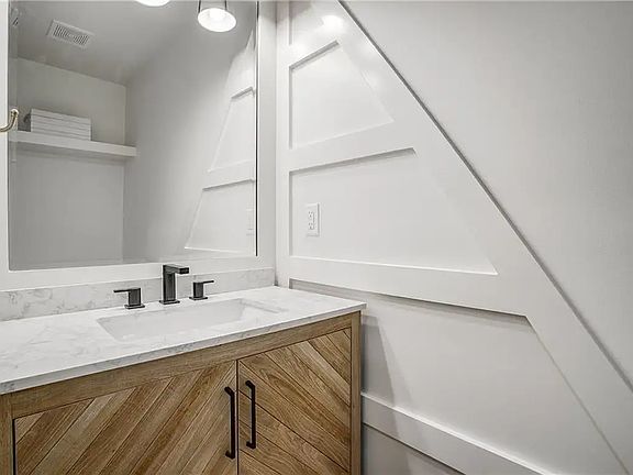 This 2 story home has high end finishes throughout: feature walls, unique light fixtures, bonus nooks, custom cabinetry, graphite stainless appliances, a potfiller, and a pantry with electrical outlet, storage and a place for a microwave or coffee bar. The sundrenched windowed sunroom was redesigned to be an office or just a great place to hang out and also has added electrical outlets. A 1/2 bath with visually interesting features, and smartly located boot bench area were added to the main level. The living room has been opened up, fireplace refaced and with a featured wall. 2nd level laundry, 3 great sized bedrooms with large closets, a large beautifully designed and tiled centerhall bath has a double vanity with quartz countertop. Huge custom designed walk-in closet and stunning en suite bath.
