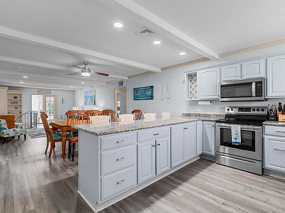 - Features: Beamed Ceilings, Ceiling Fan(s), Kitchen/Dining Combo, Living/Dining Room