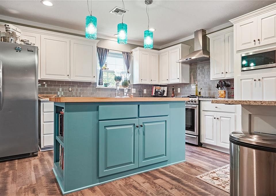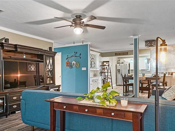 Don't miss out on this beautiful 2 bed, 1 bath home with 1275 Sq. Ft. (mol). This home has been completely updated. Updates include: Waterproof commercial grade laminate flooring, quartz counter tops in the kitchen, custom built cabinets, cabinet faces, coffee bar and wine racks. Crown molding and base boards through out, windows in kitchen and laundry room, range with hood vent, recess lighting, custom built island with butcher block top, lighting fixtures over island, farm sink with new faucets and hardware. built in microwave, pantry and laundry room doors, front door, ceiling fans/fixtures in all rooms, water heater in 2017, deck built half covered in 2017 with 600 sq. ft. (mol) with built in benches and porch swing.