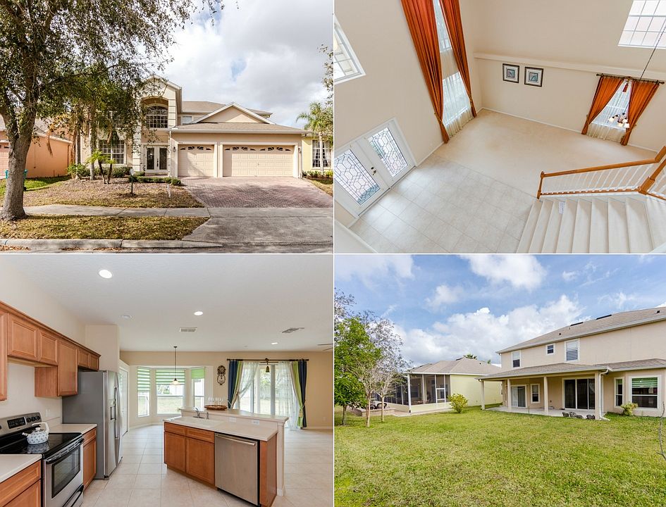 This stunning, 3500 sq ft home in Vista Lakes community boast's of luxury and exclusivity. The home has 4 spacious bedrooms, 3 and 1/2 bathrooms. The spacious kitchen allows for easy entertaining, with stainless steel appliances and easy access to the porch. The home comes with all custom made curtains and blinds. The oversized lanai has a great relaxing feeling to it, and can accommodate a nice family dinner. This is a very nice quiet community with a to of things to offer to family of all ages and likes. This home and community embodies both a sophisticated lifestyle along with the access to shopping and major highways.