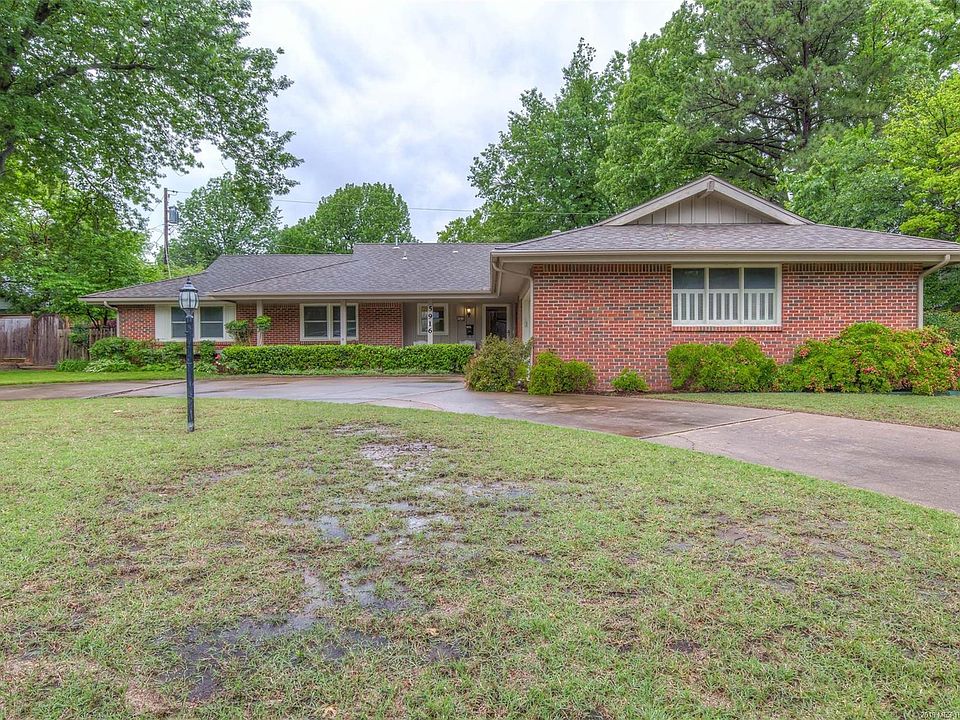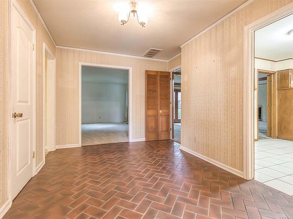 1960's charm. Original 4x4 tiles in bathrooms and "nude" matching toilet and vanity in powder room. Chevron pattern brick entry. Formal dining off kitchen. Formal Living. Den with beams and fireplace. Amazing deck with "freedom" rose bush. True 4 bedroom home. Newer appliances. Butcher block counter in kitchen. Side entry garage.