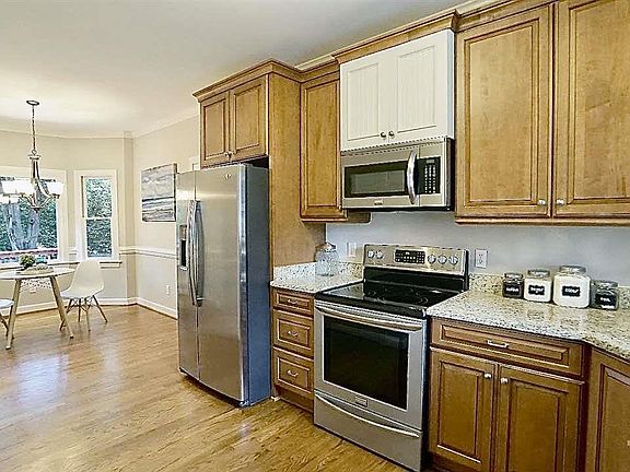 Wow! Hard to find 4 bedroom 2.5 bath gorgeous home with owners suite plus 2nd bedrm or office on the first floor. Features updated Kitchen w/granite counters, stainless appliances & breakfast nook w/bay window for natural light. 2 car garage offers stairs to unfinished bonus rm w/hotel style heat & air above. Hardwood floors, fresh paint, spacious rooms throughout, French doors to entertainment sized deck & fenced yard in private cul-de-sac conveniently located, this is the home you've been waiting for...