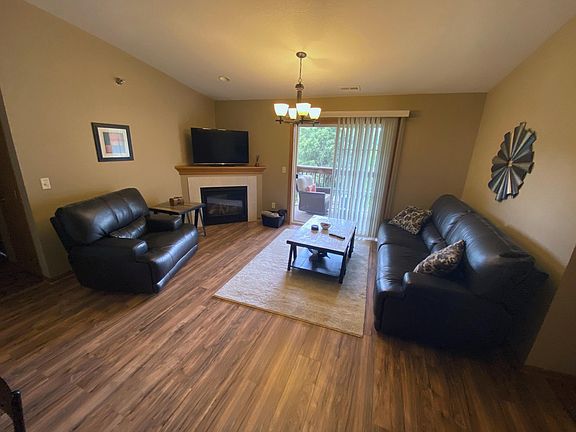 2 Bedroom, 2 Bathroom, Top Floor Unit. High vaulted ceilings with no neighbors above. 1 car detached garage and 1 assigned parking in front of building - additional parking for visitors located to side of building. Quiet and convenient location with easy access to interstate and shopping/entertainment. Step inside to new laminate floors in the living and kitchen area. Corner fireplace with a tile surround. Brand new laundry machines located in unit. Dog/Cat friendly (up to 35 lbs) for additional $50/month pet fee. $1,200/month with 1 year lease, plus utilities. $1,000 Deposit. Discounts available for longer lease agreements. Please contact for rental application. Renter responsible for utilities. No Smoking in unit.