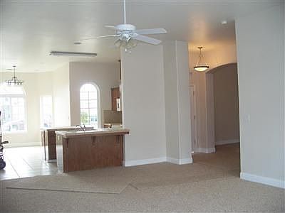 Delightful home, like new, total remodel (3/09)! Open floor plan w/vaulted ceilings. Great room features enchanting fireplace that flows into an impressive dining and huge kitchen area, graced w/tiled floors and counter tops. Home offers formal dining room. Master suite leads into the vanity area. Impressive size walk-in closet. Both master and main bathrooms have bath tub and shower. Home is accented w/plant shelves for your personal decorating touches. New paint, carpet, tile and fixtures, appliances, etc. Enchanting backyard requires minimal work furnished w/new landscaping, automatic sprinklers both front and back.