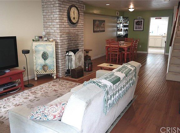 Super town home in Valley Village!!! Spacious open floor plan with large kitchen and large master bath. 2 bedrooms and 2 1/2 bathrooms! Beautiful wood flooring, Fireplace and recessed lighting in open living room and dining area. Boutique smaller complex with only 6 town homes. Feels like a single family home. HOA includes both hot and cold water, trash and gardening. Lovely private, community yard at the rear of building for relaxing and barbecue. Incredible low HOA dues.... only $320 monthly. Motivated sellers!