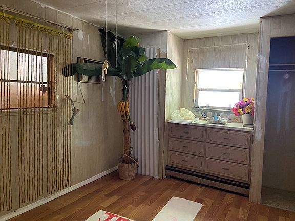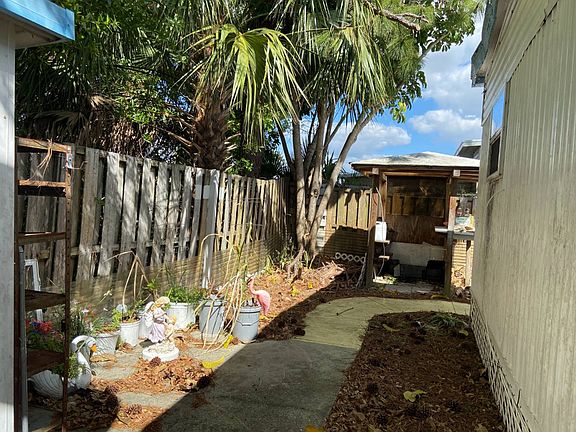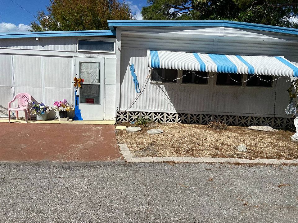 This is a mobile home for sale in a 55+ pet friendly community on a rented/leased lot. This is a 20 x 40 2BR/1.5BA mobile home with a large backyard on two sides. Some TLC is called for in this one! The living/dining/kitchen area has laminate flooring and panel walls. The bedroom has laminate, a built in dresser, panel walls, a ceiling fan and a window a/c (may or may not work). Bedroom two has laminate, panel walls and a built in dresser. The hall bath has painted plywood floors, a single vanity and a shower/tub combination. There is an extra toilet in one of the sheds along with a washer hook up. The second shed houses the dryer hook up. There is designated parking adjacent to the mobile home. The 15 x 30 lanai has metal doors an opens as a garage. It has a concrete floor. The lot rent is $504 and includes water, sewer, trash, lawn, a clubhouse and activities. Tradewinds is conveniently located within walking distance of restaurants, food stores and other services. Take the bus to the beach! Florida MH Sales, LLC cannot guarantee or warrant the accuracy of this information, measurements or condition of any property. Measurements are approximate and the lot rent is subject to change.