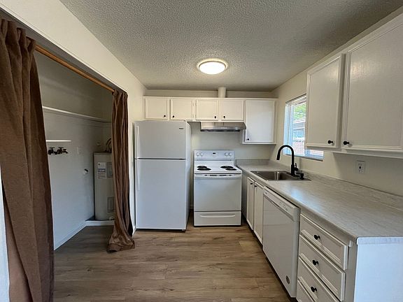 Step into this beautifully updated 2-bedroom, 1-bathroom home that blends modern finishes with a warm, welcoming atmosphere. With a thoughtfully designed layout and abundant natural light, this home offers both comfort and style in every detail. At the heart of the home is a modern kitchen featuring crisp white appliances, matching white cabinetry, elegant countertops, and a stainless steel sink. A built-in pantry provides convenient storage, making this kitchen as functional as it is beautiful. The living spaces feature wood-look vinyl flooring throughout, creating a cohesive and low-maintenance flow from room to room. Large windows and a sliding glass door let in an abundance of natural light, enhancing the home's airy feel and creating a seamless indoor-outdoor connection. The spacious bathroom is well-appointed and designed with comfort in mind, while both bedrooms offer cozy retreats with plenty of room to relax and unwind. Step outside to enjoy the fenced side yarda private outdoor space perfect for gardening, pets, or quiet morning coffee. Whether you're looking for your first home, a downsize, or an investment opportunity, this bright and stylish home is move-in ready and full of charm. Visit our website to apply and view other homes we have available! Open Application Period Begins: 03/14/2025