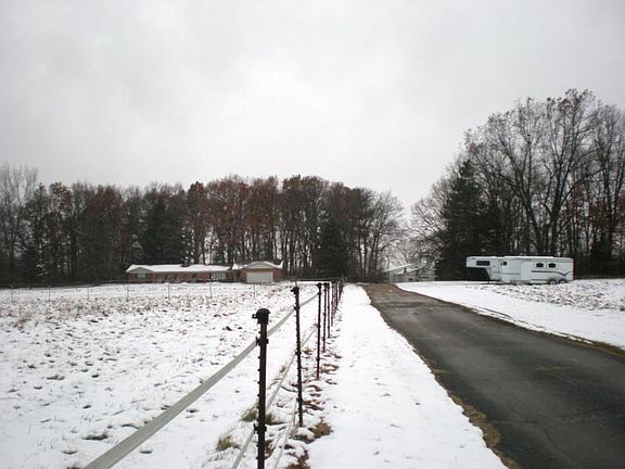 Amazing 37.5 acre horse farm property with lots of recreational area too! 3008 sq ft, 4 bed, 1.5 bath brick ranch house with 2.5 car attached garage and partial basement. 12,000 sq ft barn with 26 (10x12) stalls in two different areas, 60x120 indoor arena with clay base and sand on top, 2 baths, observation room, 3 tack rooms, hay room, loft that holds 800 bales of hay, garage for equipment. The property has 10 pasture paddocks, outdoor arena, a half mile groomed riding trail around the large pond with screen house, and wooded recreational areas. The large 3008 sq ft brick ranch house features two large living rooms 28x20 and 21x22 with vaulted ceiling, wood beams, stone work and a wrap around fireplace that is visible in both living rooms. The 26x10 large kitchen has an office area. The washer and dryer is in a large closet off the kitchen. The 12x12 dining room has a large window and patio door to the patio. The master bedroom is 12x20 with a fireplace. The three other bedrooms are 13x11, 11x12 and 11x10, one is off the kitchen and makes a perfect office. There is a half bath and a full bath, attached 2.5 car garage, partial basement 28x20. Included with the property is the is manure spreader, brush hog, a pickup with a snowplow, and other tools and equipment. A brand new tractor will be available for purchase. Border income available.