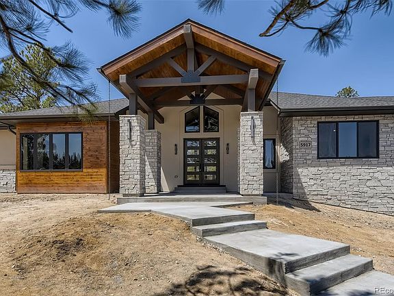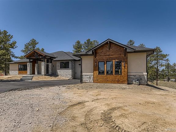 $100,000 LANDSCAPING INCENTIVE!! HURRY!! Raise your hand if you've been searching for the perfect: *Brand-new-construction! *Mountain contemporary CUSTOM RANCH-WALK-OUT with MAIN FLOOR OWNER'S SUITE! *Supremely private home site adjacent to acres of tree'd open space! *The finest finishes and appointments! *The "RIGHT SIZE" and QUALITY of DREAM HOME! *A HOME YOU CAN MOVE IN TO NOW! YOU JUST FOUND YOUR NEW HOME! JUST FINISHED AND JUST LISTED! HURRY, HURRY to see this one-of-a-king creation by sought-after Timbers Builder Summerwood Homes, Inc! This 4 bed (plus 5th bedroom or second study), 5 bath masterpiece checks all of the boxes! Enjoy main floor living at it's best! Main Level: Huge Grand Room with vaulted ceiling, fireplace and access to the massive deck; Gourmet kitchen with WOLF appliances; Large dining nook; Executive study with custom millwork; OWNER'S SUITE AND 2nd bedroom/2nd study on the main level; Mudroom/Laundry room! The fully finished walk-out basement features: 3 additional bedroom suites with adjoining baths; Large rec. room with fireplace and access to the lower patio; Truly custom wet bar with wine storage and display area; Theater room; Mirrored exercise room; Ample storage! Striking curb appeal, a 4-car garage, an "A+" home site, and one of the most sought-after communities in Colorado--Timbers at the Pinery-- make this home the total package! Show TODAY!