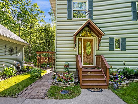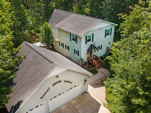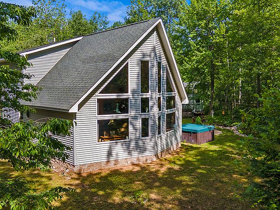 A Custom-built prow front home. Enjoy peace and tranquility lounging on the deck, paver patio, or relax your cares away in the hot tub. The prow front features a wall of windows that bring in a peaceful natural view. The custom stone fireplace will keep you cozy warm on those cold nights. Main floor features vaulted ceilings, living room, cherry kitchen cabinets, pantry, full bath, laundry/mud room, master bd with fireplace, air tub, with a full bath. 2nd floor features a game room area that doubles as a sitting area to enjoy the view, 2 large bedrooms with walk-in closets, a full bath. The completely finished lower level features a family entertainment & hobby craft room & extensive storage. Insulated 3 stall garage has storage area above,with concrete driveway, and RV carport.