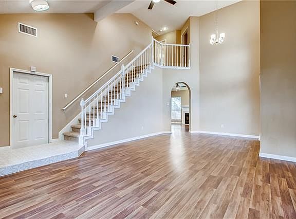This impressive brick Legend Oaks residence features grand two-story vaulted ceilings and massive windows to showcase the open floor plan perfect for entertaining. The large master bedroom en suite bath boasts double sinks, jetted tub and a walk-in shower and closet. 3 additional bedrooms up with an office/flex space. Retreat to the new deck in the backyard under the large oak shade tree.