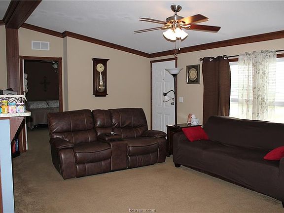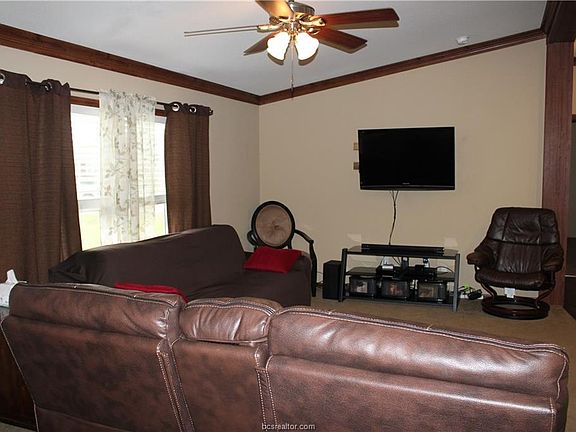 Owner says sell it!! Price reduced $8,000 . Country Living! 3/2 on 1.218 Acres only 14 minutes from town. This 2014 manufactured home has been well kept! It features an open concept , split floor plan with laminate flooring, carpet in the bedrooms, large eating bar, spacious kitchen, separate utility room, master suite with large closet and bath. All electric appliances; dishwasher, refrigerator only 2 years old. HVAC updated in 2017 Hardi plank outside, composition roofing, large covered back deck 12x12 and super large metal storage building 18x28. Located just minutes from Bryan city limits, this home offers the freedom of living out of town but not very far. The property backs up to a wet weather run-off creek with lots of beautiful tree cover on back property line. This is a corner lot.