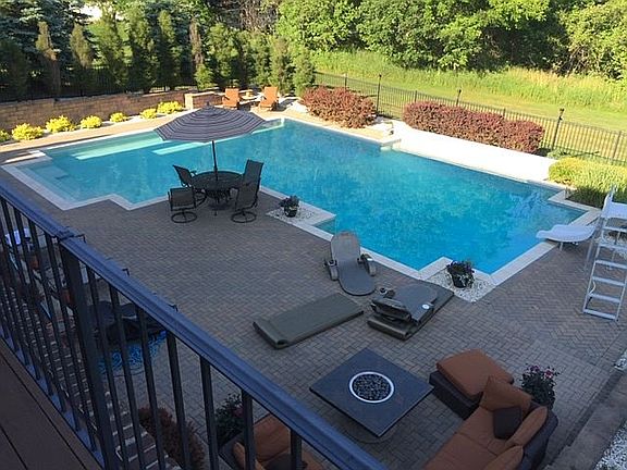 Stay home in your own peaceful tranquility resort. Hotel size salt water pool with pavers and full length of the house brick and Trek balcony. Premium lot that backs up into open wooded area. Great views of beautiful Rochester from second floor. A true open concept floor plan, foyer open to the formal dining & both living rooms dual staircase. Floor to ceiling windows, fireplace, columns, first floor bar area with wine cooler & balcony overlook. Granite kitchen, tons of cabinets, butler's pantry & center island and gas stove. Library just off the great room w/glass French doors. First floor laundry room. Huge master BM/walk in closets & large master bath w/jetted tub & glass shower doors. Bedroom w/private full bath with glass shower doors. Jack & Jill bath with glass shower doors.hard. Hardwood floors on 1st and 2nd floor and walkout is terrazo tile. Walk out is an entertainers dream. Full granite wet bar with cooler, dishwasher and disposal. Full size walk in shower a 5th bedroom and again floor to ceiling windows. Radiant heat floors in walk out New roof less than 5 years Seller a licensed real estate agent The wood floors on the main level are all re sanded and stained - Looks Great!