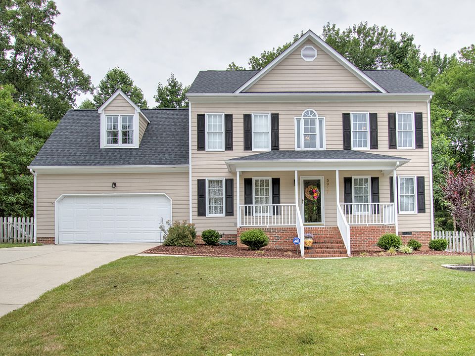 Immaculate home on hard-to-find private lot. Backs up to wooded common area in popular Adams Farm! Features include a welcoming front porch, fenced backyard, gleaming hardwood flooring through out he main level, a large kitchen with lots of cabinet space, a bright & open breakfast room with skylights & cathedral ceilings that overlook the amazing deck that spans the entire back of house, great for entertaining & outdoor living! There is a large Dining Roomm with crown and chair rail moldings, A fabulous Master Suite with vaulted ceilings, walk in closet, garden tub & much more! Convenient to shopping & all areas of the Triad!