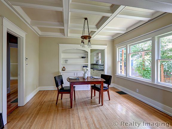 This lovely Concordia Craftsman is in a prime neighborhood, w/large front porch, hardwoods, box beam/coved ceilings, & remodeled bath w/heated tile floor. Bright office off of the kitchen. The master bedroom offers tiger wood floors, a skylight and extra bonus space (note pictures show carpet, which has been replaced with hardwood flooring). Relax in the finished family room downstairs. Newer mechanicals include: tear-off roof, high-efficiency furnace, ‘09 sewer line, updated electrical panel, updated interior plumbing/wiring. Walk to extracto coffee, Kennedy School, fern hill park, New Seasons, Alberta Arts, and Concordia University.