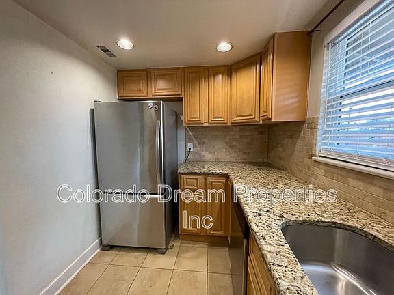 This one-level end unit combines privacy and an awesome location in the heart of the Tech Center! It backs and sides to a green belt with huge trees, so it's like living in a park. The open floor plan has a nice great room that blends into the dining room, and the kitchen is tidy and efficient, offering elegant Maple cabinets, granite counters with integrated stainless steel sink, and stainless appliances (stove is brand new.) One of the front bedrooms is off the great room with double doors so could be an office, but is a legitimate bedroom. The primary bedroom features two closets, and both baths have new vanities. The private backyard provides a nice patio space sheltered by an immense Honey Locust tree, and has an outside storage closet. Parking includes a covered car port and one reserved parking spot. *NO PETS NO PETS NO PETS*Income required is 2 times the rent*Security Deposit is one month's rent*Available August 18th*A/C*Cherry Creek Schools*washer and dryer included*water, trash and a community pool included Amenities: pool