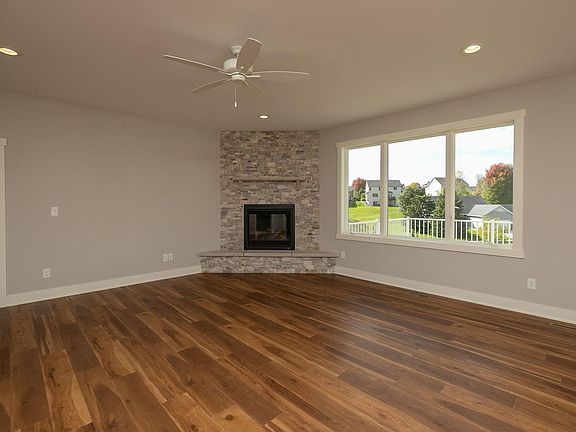 Villa living, the best of both worlds. HOA takes care of lawn care and snow removal, yet you live in a single family home. 3 bedrooms plus a MF office/study which could serve as a second MF bedroom. A MF 4-season sun room or formal dining room that walks out to a deck. The rare 3 car garage with no step entrances at garage and front door. Nice and spacious MF mud/laundry room. White cabinetry and quartz counters, stainless appliances. Finished walk-out LL with ample storage area. Option for a LL bar area. Loads of windows and natural light. Close to walking trails and convenient access to Hwy 52.
