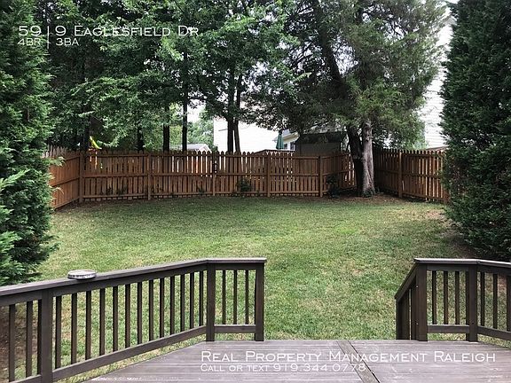 SCHEDULE A SHOWING ONLINE AT: showmojo.com/lh/176c4da08e Popular Harrington Grove Subdivision. Four bedroom, 2.5 bath well maintained home. Large deck with fenced backyard. Neighborhood has lots of amenities, close proximity to parks, schools, shopping and entertainment. Just off 540 w/ access to RTP, RDU, Dwtn. This won't last long! Small dogs (no cats) are considered. must submit photo for approval. Additional pet deposit required. Move-in cost: Rent is $1795. Deposit is $1795. Administration fee is $100. Resident monthly management fee: $10 Interested in submitting an application? Please visit our website.com Real Property Management Raleigh is the leader in residential property management. Tenants can apply to rent online, pay rent online and even take a video tour of our available homes online! *Photos and videos are provided at the agents discretion, for purposes of advertising only, and may not be an accurate depiction of the current appearance and/or condition of the rental property.