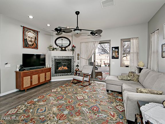 Beautifully Updated Home Backing to State Land with Mountain ViewsThe owner has lovingly transformed this home with thoughtful upgrades throughout' but is now ready to move closer to her children, creating an opportunity for you to enjoy this light, bright, and cheerful property.Situated on a lot that backs up to state land with a walking path just behind, this home offers peaceful privacy and long-distance views of Mingus Mountain from the rear patio. It's also just minutes from the Prescott Valley Entertainment District and all the shopping, dining, and amenities you could want.Recent updates include:Full interior and exterior paintingAll new flooring and baseboardsNew fans and updated lighting fixtures throughout10 new windows and new French doorsGuest bath: new toilet, vanity, lightingMaster bath: new shower, vanity, lighting, and a stylish barn doorKitchen: freshly painted cabinetry, new countertops, backsplash, sink, and an extended island topNew tile flooring in both bathroomsLandscaping upgrades: pavers installed and sealed, drip irrigation systemAdditional insulation throughout the home and an insulated garage doorNew guttersThis meticulously maintained home blends comfort and convenience with scenic beauty and privacy. Come and see it for yourself, you won't be disappointed.