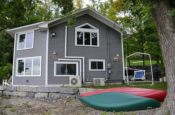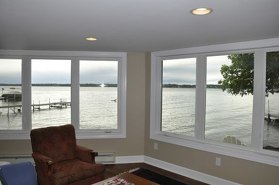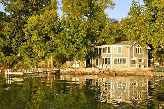 Smartly renovated home w/all creature comforts inside & out. Set on rare eastern shore peninsula-like lakefront. There's no sacrifices to be made - great lakefront AND already renovated home. There's high speed internet, master suite, closet bar to the north designated forever wild area, new seawall and municipal water & sewer. Professionally landscaped patios on north and south side are fabulous for entertaining or simple BBQ & the sunset. Windows everywhere. Easy Kitchen, Laundry Room and exercise space with a 180 lake view. Sit on patio, catch the sunset, fall in love, & make it yours!