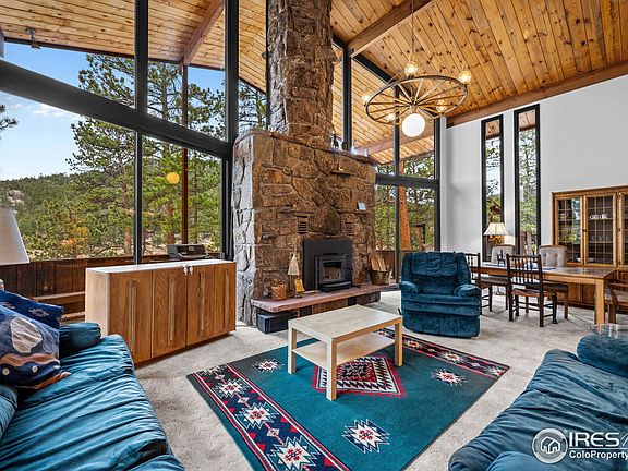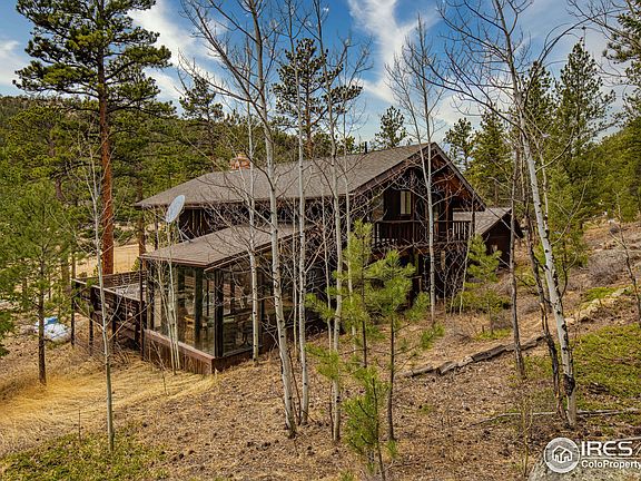 Look no further for your very own mountain cabin Retreat. Enter the gated community of Big Elk Meadows passing the horse pasture and two of the five lakes on your way to this lovely three-bedroom two bath two car garage home. Enter this brightly lit chalet style cabin with its soaring windows and high natural wood ceilings. Host family and friends in the kitchen, which opens up to the dining and living area with a magnificent floor-to-ceiling rock fireplace. The primary bedroom is on the main level and has an adjoining sunroom which opens on to expansive, decking, outstanding views. You and your guest will enjoy BEM amenities which include fishing, boating, a heated swimming pool, tennis courts, a picnic pavilion, horseshoe pits, and a pasture for your horse. There are numerous hiking trails as this community is surrounded by Roosevelt national Forest. It is in close proximity to Estes Park, Rocky Mountain national Park, LYONS, Longmont and BOULDER. You can make this gem your own with a little TLC. Call to schedule a tour or for more information.