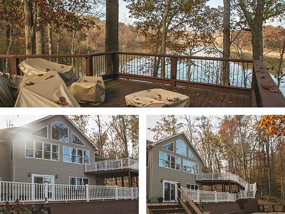 Magnificent, custom-built, luxurious, get-a-way situated on its own private peninsula on Rough River Lake w/gated entrance! This one of a kind retreat offers just over 18 ac., w/abundance of wildlife & scenic tranquility. The approx 4,000 finished sq ft offers 3 bedrooms, open concept family room, dining & kitchen concept w/a gorgeous fireplace focal point & panoramic views. In the w/out bsment you will find 2 add. family rm/lvg spaces, sitting rm & flex rm to be used as an add. bsment w/ensuite full bath. The main home is conveniently set up on a seamless backup generator. Enjoy time spent on the expansive tri-level deck, also w/ panoramic views & infinity pool w/built in benches & entertainment areas. For convenience there is a det. approx 28x40 metal garage wkshp to house all of your recreation equipment ! Take the lighted & graveled path down to the private boat dock, equipped w/2 water sources along the way. This property also feat. an quest house located in a private portion of the property, w/2 oversized garage bays, 1 bdrm, 1 bath, fully equipped kitchen, lvg area & large deck which is currently income producing. Call for add. details or schedule a private tour today!