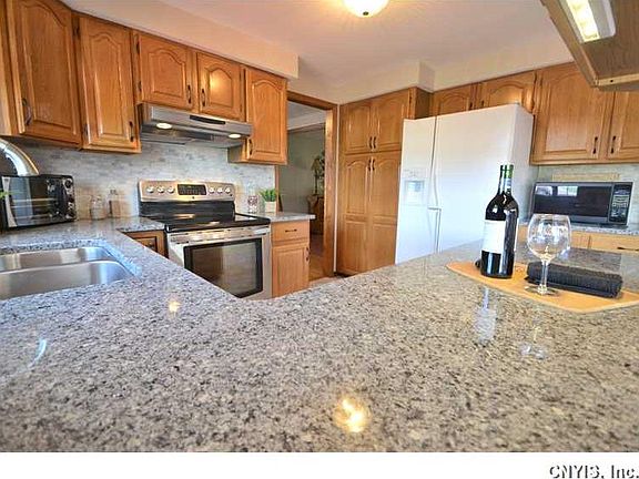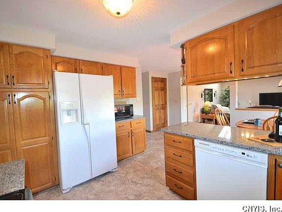 Looking for paradise? Beautiful Move-in ready Home on over 26 acres of both wooded & open land! Many new upgrades: Granite & Quartz throughout. Spacious deck w/ attached 12x16 gazebo: Perfect for entertaining/relaxing/enjoying nature's magnificent beauty. Large fenced-in yard. Mult. outbldgs. Grow your Passion/Grow your Small Business. Heated & air-conditioned 30'x40' pole barn w/ 12' ceilings, 56'x26' finished heated 4-car garage & 10'x14' shed attached to fenced arena! 15KW standby generator. Private rd to back of property. Fish, horseback, snowmobile. Many possibilities. 25 Min to Syracuse!