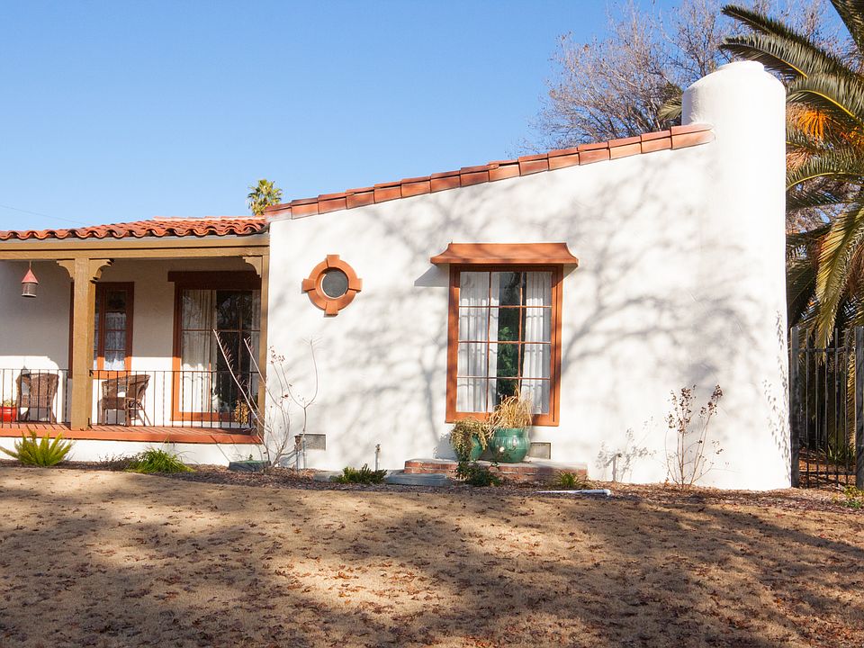 Character and charm exude throughout this tastefully remodeled 1931 Spanish style home. You have to see this one of a kind home in person. Beautiful updated kitchen with granite counter tops all new flooring, cozy fireplace, large bedrooms and much more. The outside is beautifully manicured with roses, nice shade trees and amazing palms. The backyard is an oasis. The pergola is amazing perfect for entertaining. Covered carport with a detached garage. There is also room to plant a garden. This home is absolutely charming.