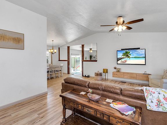 - Ceiling Fan(s), Kitchen/Dining Combo, Laminate Counters, Main Level Primary, Vaulted Ceiling(s), Walk-In Shower, Programmable Thermostat