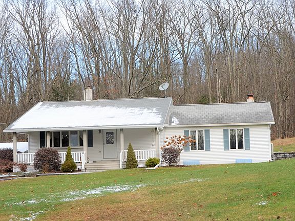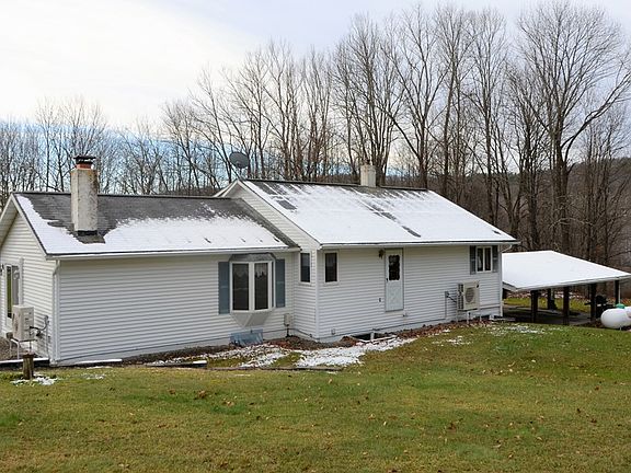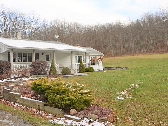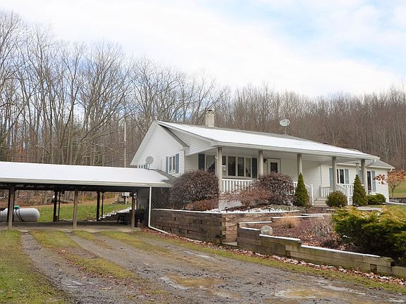 A piece of privacy will be found here nestled up on 10acres of land with views of the mountain side and wildlife. This well maintained home has been only owned by 1 owner. One look at the log family room with custom built mantle& stone fireplace will be all you need! Large front covered porch done w trex decking allows you to enjoy the sunrise & sunset. Open Floor plan with 1st floor bedroom and bath. Finished basement with 2 additional bedrooms, full bath, laundry room, and a storage room, that you could easily finish. Now, let's get to the outside!!! 10 acres, large yard, wooded area for hunting, a 1,110 square foot quonset hut for all your ATVs, tractors etc, a 2 story, 2 car oversized garage, plus an attached carport, also makes a great spot for gatherings. Full house generator, heat pump, so you cool in the summer & toasty in the winter. RETIRE here & Enjoy the Fruits of your Labor!