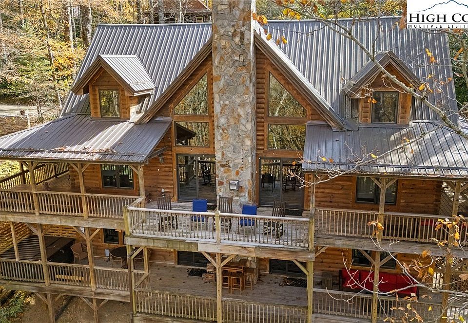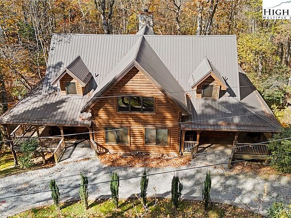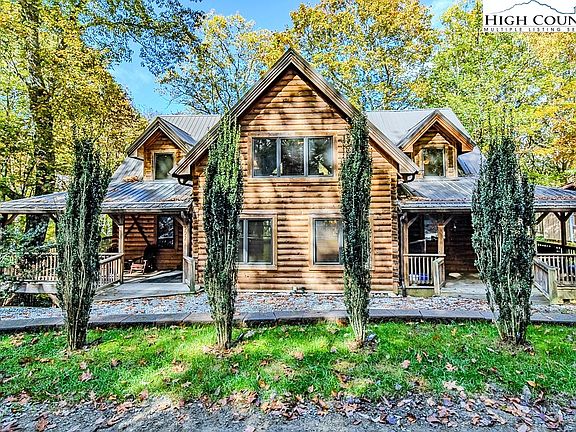 Mountain Lodge "Fire and Ice" Retreat in Blowing Rock, NC offered fully furnished – Blue Ridge Beauty next to Appalachian Ski Mountain Resort. Welcome to your dream mountain getaway! Nestled in the heart of the Blue Ridge Mountains, this log cabin offers rustic charm, modern comfort, and an unbeatable location just minutes from downtown Blowing Rock and the Appalachian Ski Area. Step inside to a warm, log interior featuring soaring ceilings, exposed beams, and two grand stone fireplaces (woodburning and gas). The main floor primary suite provides comfort and privacy, while the open loft overlooks the great room and with game tables including air hockey, foosball and shuffleboard bowling table for endless fun. The convenient kitchen boasts granite counters, stainless appliances, and plenty of space for gathering and entertaining. The lower-level game room (features billiards, game table and Pac-man video table) is perfect for guests, with room to relax or play after a day of mountain adventures. Step outside on the lower level deck to enjoy a hot tub under the stars or cozy up to the fire table with a cup of hot cocoa surrounded by peaceful forest views. The main level wrap-around porch provides numerous cozy spots for everyone. Whether you’re looking for a personal mountain retreat or a proven vacation rental investment (with overflow sleeping areas) this cabin offers it all—rustic elegance, modern amenities, and prime location just minutes from skiing, hiking, and the charming shops and restaurants of Blowing Rock, Boone, Banner Elk and easy, quick access to the Blowing Rock Blue Ridge Parkway entrance.