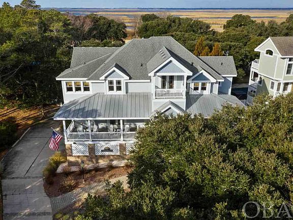 This magnificent sound front beauty, with its cache of awe-inspiring custom features, is sure to please even the most discerning buyer. From the gorgeous entryway, to the the elevator, to the soaring stone fireplace, to the opulent trim and solid 6-panel doors throughout, to the one-of-a-kind kitchen pot rack (that had to be craned in during construction!), this 6-bedroom, 6 1/2-bath home in the premiere Currituck Club community is simply stunning! It's unparalleled. A canopy of tangled oaks with dramatic up-lighting frames the front of the home while views of the Currituck marshes and sound and 8th fairway greet you out the back. The well-appointed kitchen boasts 42-inch cabinets, custom granite countertops with a step-up counter on the cooking island, a double wall oven and stainless steel appliances. There's a beverage fridge and a unique casual dining area with built-in seats/storage. Beautiful French doors lead out to the top floor covered porch and sun deck (Trex). The ships watch makes for a perfect office space with another set of French doors leading out to the front balcony. All bedrooms are en suites and have access to outdoor decks. Most of the baths have drinking water on demand and the generous master bath features a private water closet, large standup soaking tub, shower, double vanity and tile floors. A mid-level den also leads out to a covered deck, and the mid-level laundry room is equipped with a utility sink. A ground level game room, complete with wet bar, also provides access to both the pool area and the garage. The outdoor pool area boasts a heated, gunite large pool with a waterfall feature, spacious decking, a private hot tub, a shaded kiddie pool and beautifully landscaped surroundings. Plus, the amenities secured by the Currituck Club are undoubtedly some of the finest the northern Banks has to offer - an 18-hole Rees Jones designed golf course with driving range and Pro Shop, a health and fitness center, five community pools and seven community tennis courts, gated security and private roads, walking/biking trails and even in-season trolley service to your own private ocean access. Schedule an appointment now before this unforgettable gem slips away!