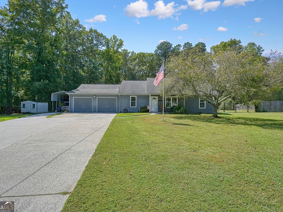 One story rancher perfectly situated on 3.1 private acres at the end of a quiet cul-de-sac. A classic rocking chair front porch sets the tone for relaxed country living, while key elements ensure comfort and convenience. Step inside to find hardwood laminate floors, vaulted ceilings in the open family room, and natural light from newer vinyl windows. The galley-style kitchen offers a functional layout, with all appliances included, making move-in seamless. The primary suite on main level provides a peaceful retreat with its ensuite bath and walk-in closet, while secondary bedrooms are comfortably sized for family or guests. A fenced backyard offers endless space for play, pets, or future expansion. Car enthusiasts and hobbyists will appreciate the oversized two-car attached garage, a 36-foot RV/5th wheel carport, and a 2nd driveway providing easy access. With a durable 30-year architectural shingle roof and hardy plank siding, this home is built to last. Ideally located, you'll enjoy the quiet of country living with quick access to shopping, dining, and scenic outdoor trails just minutes away. This property is the perfect blend of farmhouse charm, practical features, and acreage privacy-ready to welcome its next owner.