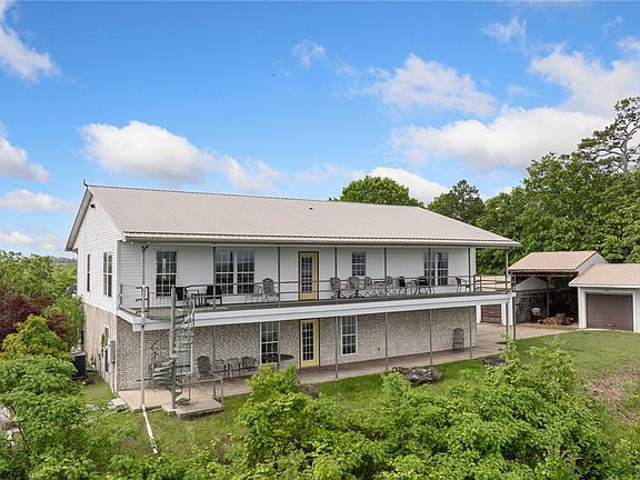 Welcome to your private lakeside haven! This exceptional 4-bedroom, 3-bath home offers 3,000+ sq ft of well-designed living space on 5 peaceful acres with sweeping 180° views of Bull Shoals Lake. Enjoy year-round comfort with an open-concept layout, spacious living room, and wall-to-wall windows that frame the lake. The kitchen features ample counter space and storage, flowing into the main living area—perfect for entertaining. The lake-facing primary suite includes a private bath and walk-in closet, with generous additional bedrooms for guests or family. A full-house generator ensures peace of mind. Relax or entertain outdoors on expansive decks, patios, and covered spaces.