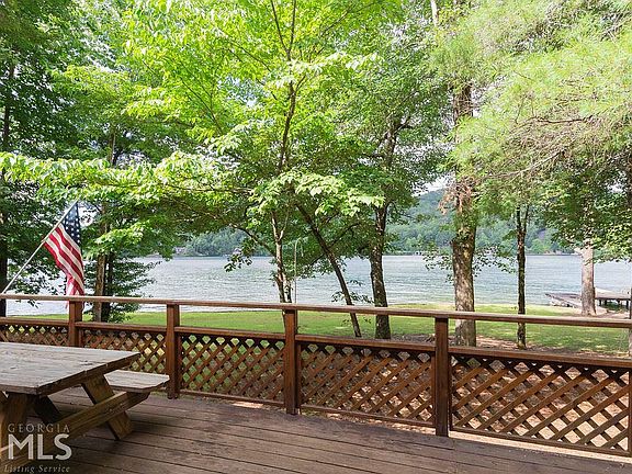 This is the lot you have been looking for! 2.1-acre, flat lot with mountain and sunset views! This classic fishing cabin sits on a grassy lawn with 346 ft. of Lake Burton frontage. Enjoy the sunset views from the large screened porch or the full-length deck. The old boathouse has been taken down and the empty slate awaits new memories as you create your own personal style Lake Burton home. Moccasin Creek is a great ski run. Easy paved access.