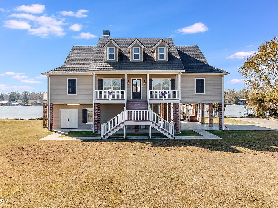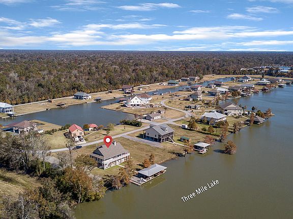 **Luxury Waterfront Camp/Home, and it's the best location on the lake!*** Have you been searching for the perfect luxury waterfront camp in Louisiana that won't require multiple hours of driving? This glamorous 2-story home is located on the private 3-Mile Lake in a gated, residential community on a corner lot. The first floor is an apartment-style one-bedroom that features beautiful natural lighting, a full kitchen with commercial appliances and Thermador cooktop, spacious sitting areas, a full bathroom, and laundry room. It could easily be used as a rental, Airbnb, or a guest suite. The second floor of this home really allows it to shine and would be perfect for a primary residence! This part of the property features four spacious bedrooms, including an ensuite master and an additional 1.5 bathrooms. Every bedroom is large enough to comfortably sleep at least two people and there are walk-in closets in each. You will be delighted to find that there is a second laundry room with space to hang and fold your clothes as well as room to store your washing supplies. The dining room can easily seat 8-10 people and opens up into the kitchen and living areas. Due to the space of the dining room, you may wish to use it as an office or extra space for the family game night. The kitchen is complete with new, stainless steel appliances, a pot filler spout over the stove top, plentiful storage, and a large wrap-around island/bar with a complete view of the lake. Relax in the living room that centers around a natural stone propane-burning fireplace; you will once again have a perfect, unobstructed view of 3-Mile lake from sunrise to sunset. No detail was overlooked when designing this home as there are granite countertops in both kitchens and all bathrooms, a full sound system (inside, outside, and around the dock,) two tankless water heaters, ten outdoor security cameras, a firepit, generator hook-ups, and wide-plank wood floors throughout the second story! Parking is no issue, either. You will notice ample parking which includes a carport with space for 3 cars, 2 electric boat slips, and a floating dock with room for 2 jet skis. Both the carport and dock have ceiling fans to keep you cool during those warm summer nights, as does the wrap around porches on both levels of the home. Should your in-laws wish to visit in their RV, there is a parking pad and full electrical & water hook-ups for their use! Located on the property is a 20x12 storage building for your lawn mower or four-wheelers, and under the carport, you will find a large storage area that may be used for hunting and fishing equipment or seasonal supplies. Other specifics that should not be overlooked include: a waterslide with pump, extra boat docking space, a 500-gallon propane tank, Gorilla Decking for the stairs and upper level patio flooring (does not leak when it rains,) spray foam insulation, and a paid for city water set-up. 3-Mile Lake is a private body of water and a well-kept secret that is popular among locals for its fishing, swimming, boating, and water sports. Sherbourne WMA is just a short drive away and offers primitive camping, deer hunting, and a rifle range. You must visit this gorgeous home to realize its full potential as a luxury a full-time residence, rental property, fishing camp, or gathering place for your entire family! See Documents for the List of Amenities.