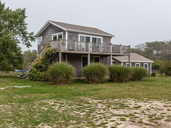 Silent Sounds & Conservancy. Located down one of the Island's private roads Old Mill Road, this property is an equal distance to Fresh Pond and to the stunning sunsets at the end of Cooneymus, known to the locals as "sunset beach". A popular Block Island inverted design with 4 bedrooms and 2 and a half baths. Open living, dining, kitchen on the upper level with a large walk out deck to entertain and appreciate the sounds of this tranquil, private neighborhood. The lower level offers 3 bedrooms and a separate, private master suite. The master suite, located through an enclosed breezeway, has its own entrance and deck, sitting area, laundry and full bath with generous space to enjoy the suite's privacy. This property is distinguished by its private location and by the abundant, two and a half acre yard that is connected to acres and acres of Conservancy Land. Look right, look left, look ahead and you will find a path to the Island's cherished and famous Greenway Trails, a network of maintained trails that connects you to almost anywhere on the entire Island. From the cottage, you can walk east, west, north, and south, all within the Island's Greenway Trail system. Be in middle of the Island's impressive forty five year effort of conserving over 46% of Block Island. Enjoy the lifestyle of this Island setting. Family and friends can enjoy the peaceful time away from town. Relax for a few days and relish the quiet and the unruffled sights and silent sounds of Block Island.
