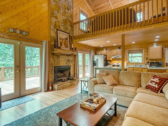 Here's your log cabin in the mountains! Built in 2007 and only occupied part time. Great condition! 2 bedroom, 2.5 baths with loft for additional sleeping space or an office. Two master suites- one on each level with cedar closets & attached baths. Half bath off kitchen area. Open floor plan. Wood burning fireplace. New granite countertops in the kitchen. Great walk-in pantry. New light fixtures throughout. Large laundry room with storage space. Entire cabin exterior and deck freshly stained. New deck extension added for outside enjoyment. New fenced-in area for pets, etc. New hot water heater. New washer, dryer & laundry sink. All appliances included. Wooded 1.48 acre lot. Gentle terrain, easy access. Private well with new pump. Furnished with the exception of personal items, tools & some d+cor. NO HOA. Located off a beautiful scenic paved county maintained road. Less than 15 mins back to Blairsville and about 10 minutes to the public access area on Lake Nottely! Great cell phone service & internet.