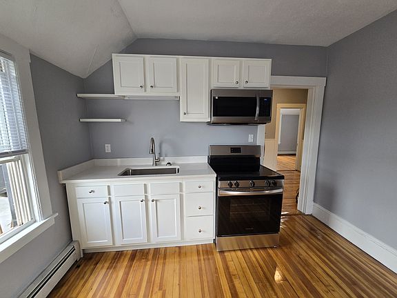 Remodeled 2-bedroom apartment located on the top floor. Eat-in kitchen with all new appliances, cabinets and counters. Living room wth a wall plug for hanging your tv. We can help you with that. Two small but perfectly sized 2 bedrooms. Must have good credit (620 or higher) and income to support the rent. This is a great unit with lots of sunlight. Unit comes with one off street parking spot. One year lease.