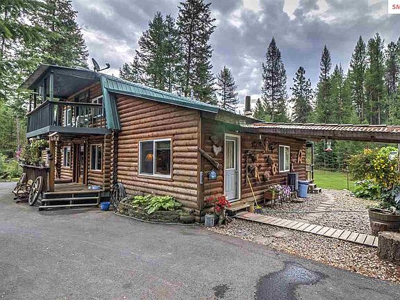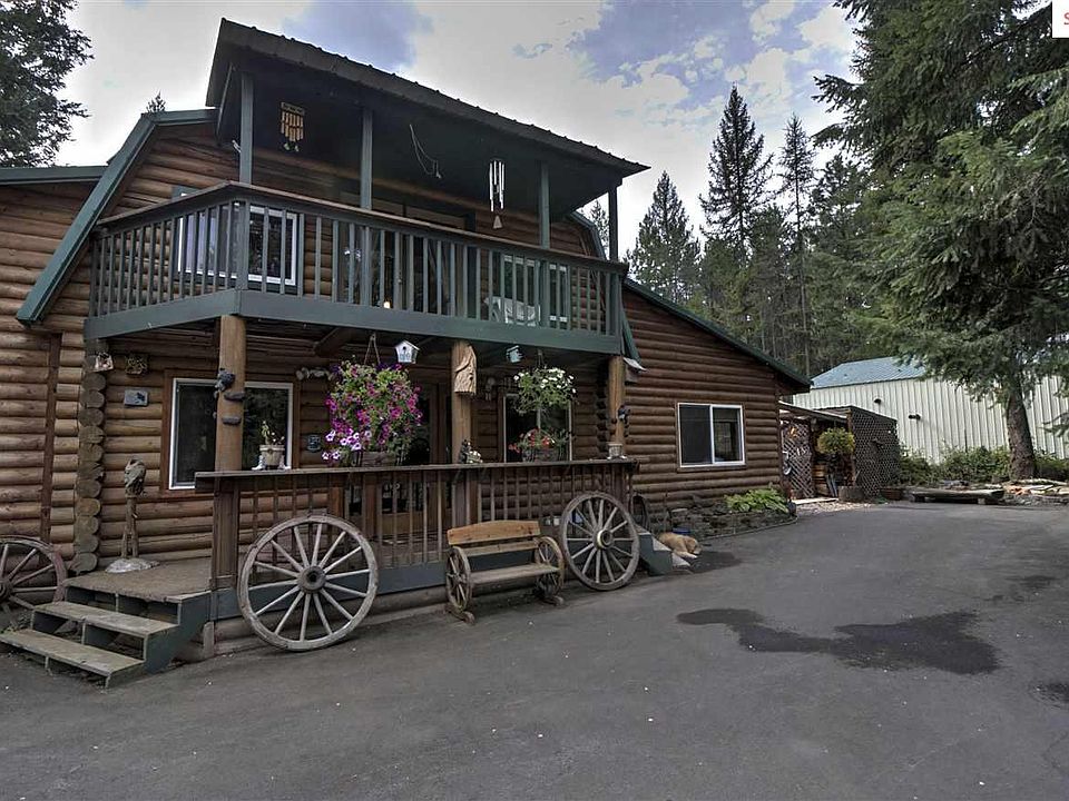 Picturesque log home on 2.20 beautiful wooded acres. 2204 Sq Ft of living space includes 2 bedrooms, 2 baths, a large living room, family room, and covered decks in both the front and back of the house. Family room is a great size with beautiful wood floors, and a wood stove for warmth. The dining room an open area with access to both the kitchen and family room. Kitchen is large, with plenty of storage and counter space. The living room is spacious, with multiple windows that offer natural light, and views of the woods. Main floor bathroom is a generous area with a stall shower. The downstairs bedroom is carpeted and provides ample space. Upstairs is comprised of the master bed and bath. Enjoy the privacy of your own floor, with french doors leading to a balcony deck. En-Suite Bathroom gives the choice of a bath or shower, and shelves for storage. Area surrounding the house utilized by a large carport, multiple storage sheds, 2 car workshop, greenhouse and garden.
