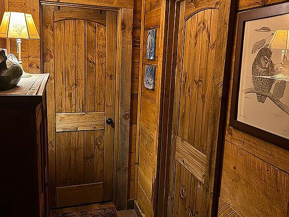 Custom built home by original owners. Solid pine plank walls throughout. Whole house renovation 2023. Everything new (HVAC, Bathrooms, Kitchen, Flooring). Added a utility room and laundry room to expand living space. Two king bedrooms, one on main and one on second story. Bunk room on 2nd floor. Luxurious wraparound screened porch. Large deck for spa.