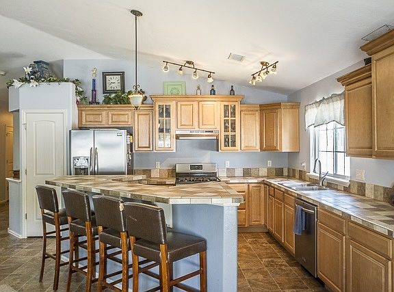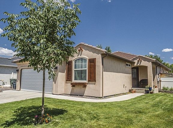 Well kept stucco rancher in quiet NE Grand Junction neighborhood. This house is clean and spacious with a split bedroom layout and open-concept common areas. New paint and carpet, lovely tile kitchen with eat-in island as well as space for a formal dining room table. Awesome master bath has oversized soaker tub and a shower stall, with double vanity. Tag-team that utility bill with the recently added solar system, paired with the smart new Nest home heating and cooling thermostat to keep your bills low and the temperature comfortable, whether you're home or away. Nice sized front and backyard have just enough grass to enjoy, but not enough to be overwhelmed with maintenance. A full sprinkler sytem is present and a small RV parking area is just the icing on the cake for this wonderful property.