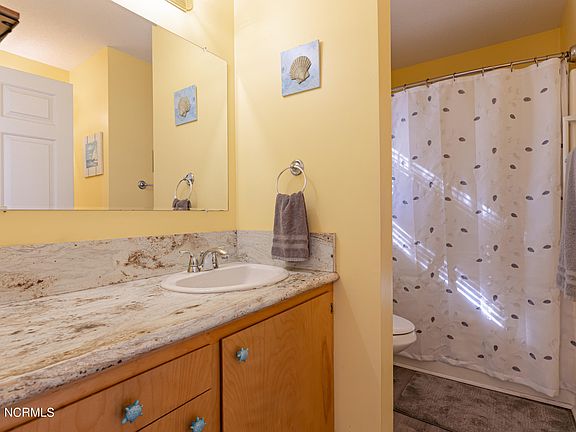 country style with wrap around porch view of pond. fun watching birds n .fish. quite family atmosphere. some retirement. redone roof put on lifetime metal last year. new heating and air last year, new counter tops in kitchen and bathrooms. also new pump in well. had septic pumped out last year. few miles from Holden beach