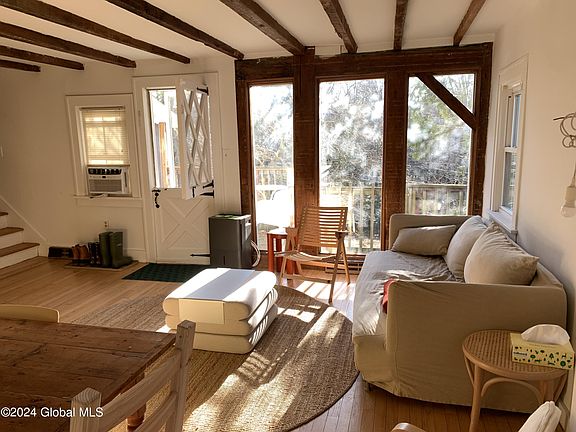 Recently renovated 3 bedroom home sitting on 4 wooded acres in a rural Taborton Mountain setting. Inside the living area has been opened up and hardwood floors brought back to life. Property on both sides of the road with a two story, 864 sq. ft. barn with electric service across the street. New roof on barn, newer roof on house, 5 yr. old drilled well, magnolia tree, fruit trees, privacy. Shed, outbuildings, front porch, and back deck. Averill Park School District. Updated kitchen and bath, new windows, emergency generator panel, built ins, and charm. Primary bedroom has a walk in closet. Property abuts 50+ acres of privately owned forever wild forest and is within walking distance of 122 acres of publicly accessible land with a 2 mile hiking trail. 3/30 from 11-1pm