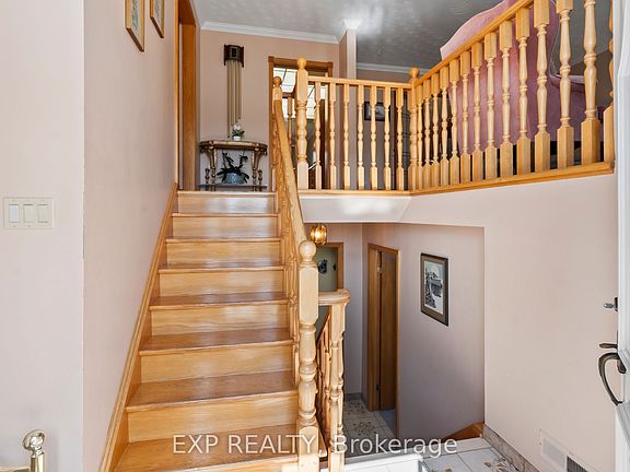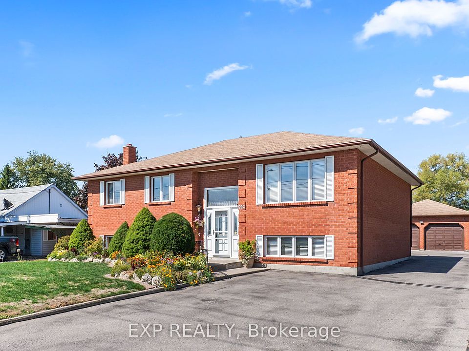 When the owners lovingly built this home, they went above and beyond in every corner, nook, and cranny, exceeding requirements and adding thoughtful touches that set this property apart. The craftsmanship and attention to detail are evident throughout. This all-brick raised bungalow is a rare find, blending comfort, character, and unmatched potential making it not just a house, but a lasting legacy of quality. With exceptional street presence in a high-demand area, this property offers incredible visibility and endless opportunity. Inside, the oversized kitchen shines with abundant cabinetry, a private pocket door, and views over the sprawling backyard. The living and dining rooms, divided by elegant French doors, are perfect for hosting family dinners or entertaining guests. The primary suite boasts dual hers and hers closets, a walk-in, and private ensuite powder room, while two more spacious bedrooms and a full bath complete the main floor. The lower level features two generously sized bedrooms, a bright family room with oversized windows, and a one-of-a-kind antique "Weso" wood-burning fireplace. An enormous party room already roughed in for a kitchen awaits family celebrations, casual gatherings, or business meetings, while a dedicated laundry room and expansive cold cellar add practicality. Outside, an oversized two-car garage is joined by multiple outbuildings, including a smokehouse and potting shed. The gardens are established and inviting, offering space to unwind and create. Best of all, this property is zoned industrial, making it an extraordinary opportunity for entrepreneurs. Whether you envision a home-based business, professional office, creative studio, or new commercial venture, the combination of high-traffic location, industrial zoning, and residential comfort is unmatched. This one-of-a-kind property delivers the perfect mix of visibility, versatility, and lifestyle. Book your private showing today!