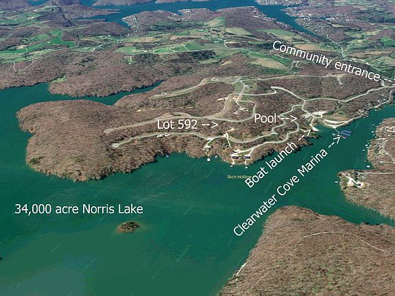Lot 592 N Two Rivers Ln: Build your dream home on this beautiful wooded lake view lot that's gently rolling to rolling and has underground utilities including hybrid sewer and utility water. Clearwater Cove, a gated Norris Lake waterfront community, offers saltwater pool with pavilion, boat launch, and is adjacent to Clearwater Cove Marina, a public marina where covered boat slips are available to rent. Just minutes away by boat to the most popular marinas, Stardust, Sequoyah, Shanghai, Sugar Hollow and Deerfield and only 20 mins off of I-75 LaFollette exit and shopping within 15 minutes. Take your tour Today!