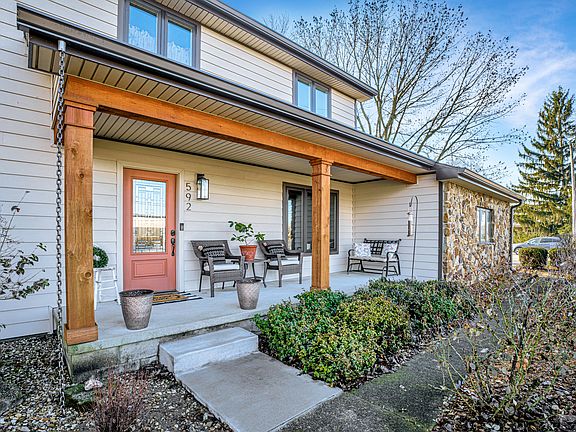 Welcome to this beautifully Renovated 2-Story Home on a Spacious Corner Lot. Located behind the high school, this Home has been meticulously maintained both inside and out. From the moment you walk through the door you will fall in love with the Modern, Open-Concept Layout featuring a beautifully updated Kitchen w/ Cambria Quartz Countertops, Custom Wichman Cabinetry, & Stainless Steel Appliances. The Kithcen flows perfectly into the Living & Dining area and creates a perfect space for gathering. The Main Level also features an Office, Bonus Room, Laundry Room, & Half Bath and has newer Engineered Hardwood Flooring and an updated Custom Drop Zone Area off the Garage. Upstairs you will find the 4 Bedrooms & 2 Full Baths and a Ton of Updates including New Flooring in 2023. The Primary has been upgraded to feature an En-Suite with a beautiful Custom Shower and Walk In Closet. Step out back onto a lovely Covered Porch that includes a Hot Tub just updated in 2018. The Backyard is beautifully maintained and offers plenty of options for relaxation and play. Homes like this don't hit the market often, so don't miss out!
